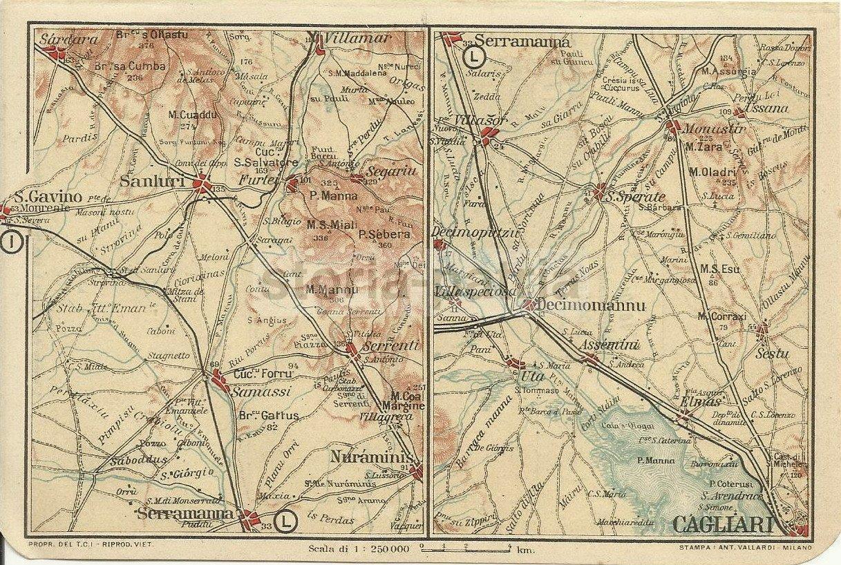 Sardegna, Italia Meridionale, Carta Topografica, 1927
