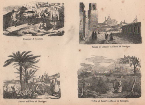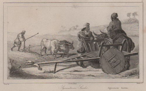 Sardegna, Costumi Popolari, Agricoltori, Antica Incisione