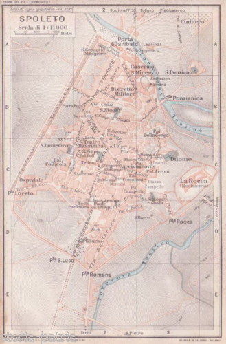 Umbria, Spoleto, Antica Mappa Topografica, Stradario, 1923