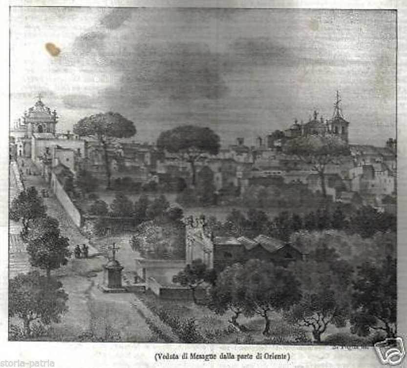 Puglia, Salento, Mesagne, Bella Antica Veduta, Litografia Dell800, d'Epoca, Originale