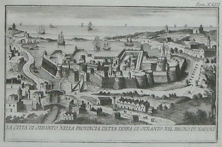 Puglia, Salento, Otranto, Bella Antica Veduta, Panoramica, Decorativa, Incisione 800
