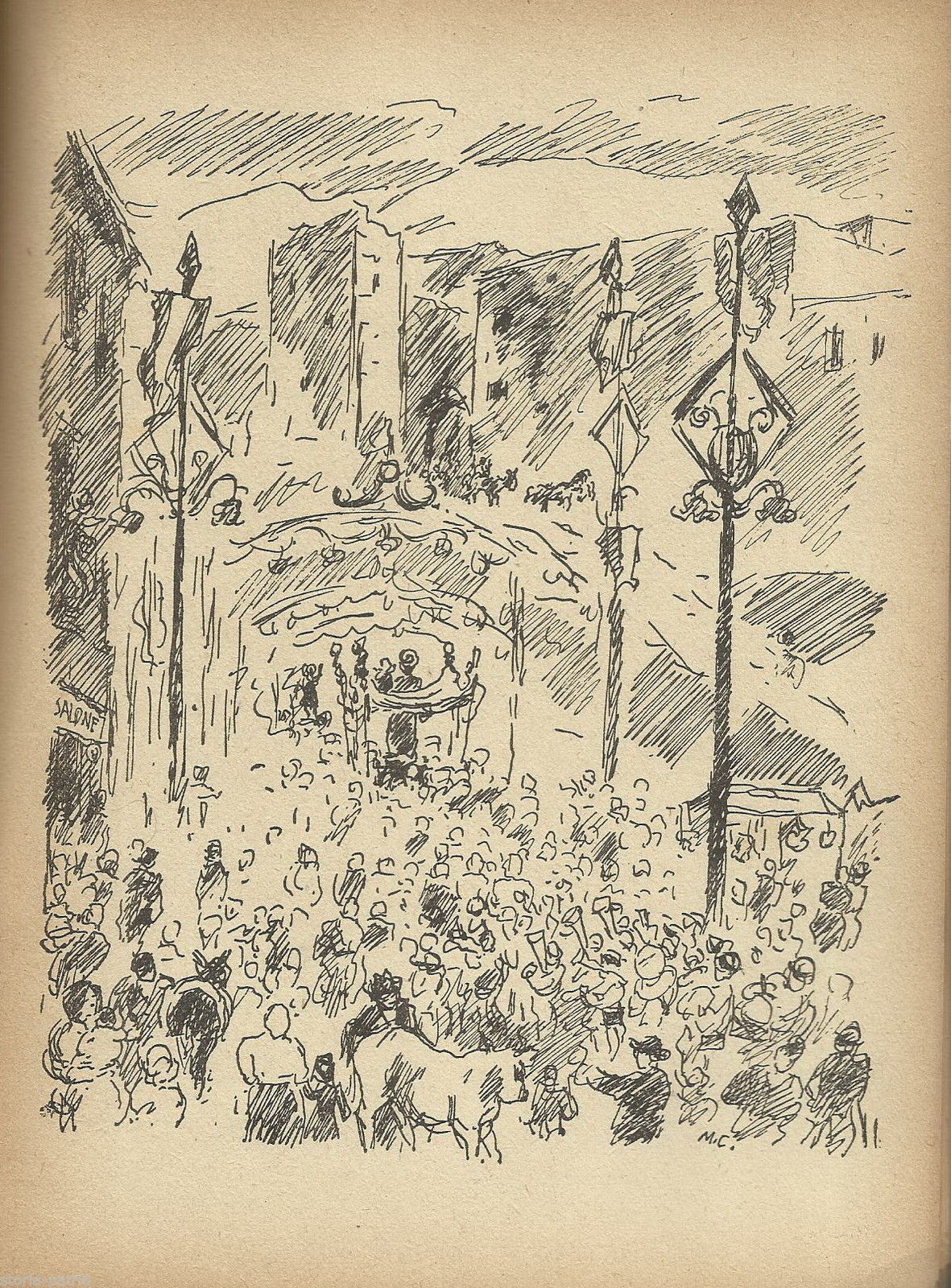 Arte, Abruzzo, Michele Cascella, Inusuale Veduta Di Paese, Folklorica Processione