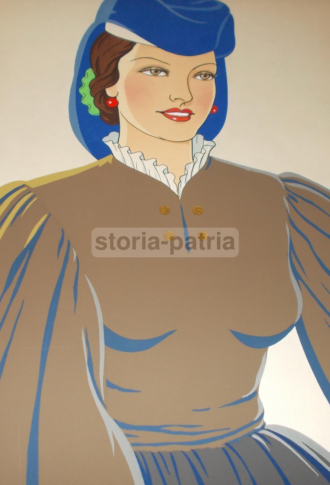 Arte, Ettore Tito, La Modella, Folclore Veneziano, Costumi Popolari, Antica Incisione