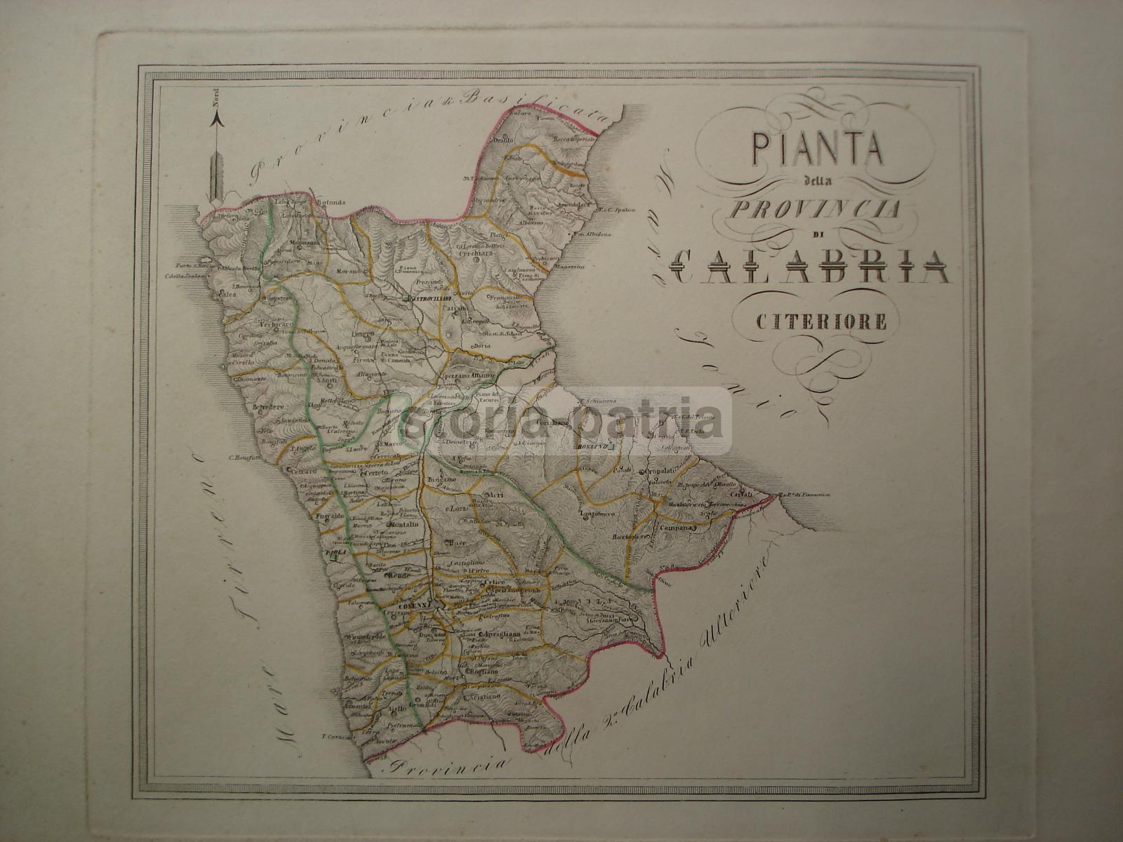Calabria, Cosenza, Rossano, Castrovillari, Sila, Antica Mappa Geografica, Decorativa