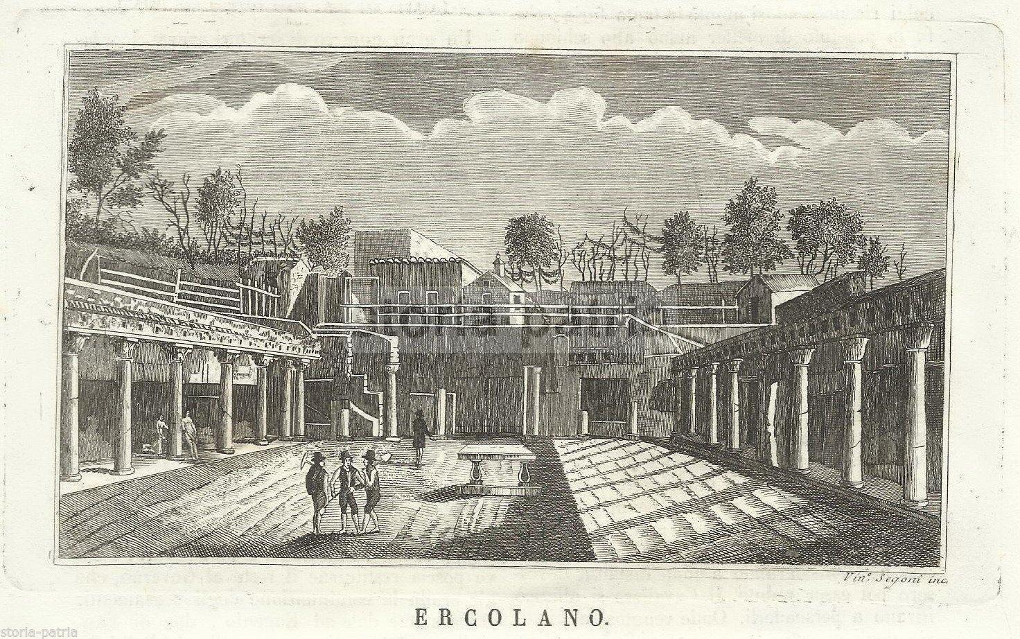 Campania, Antica Animata Veduta, Ercolano, Architettura Con Colonnato, Segoni, 800