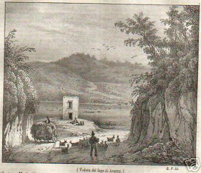 Campania, Averno, Bucolica Veduta Paesaggistica, Lago Con Costruzione, Lito Dell800